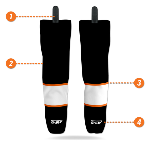 Our sublimated hockey socks are fully customizable to allow your team to match their sublimated jersey and shell to create a highly professional full uniform look. These socks can also be used on a traditional tab jock for convenience. Plus, they feature elastic heel cuffs for comfort.